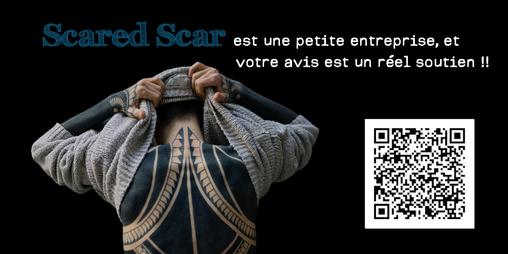Vous pouvez également me parler, me suivre et me soutenir en vous abonnant aux réseaux sociaux de Scared Scar. Et m’envoyer également votre avis sur mes soins de tatouages!